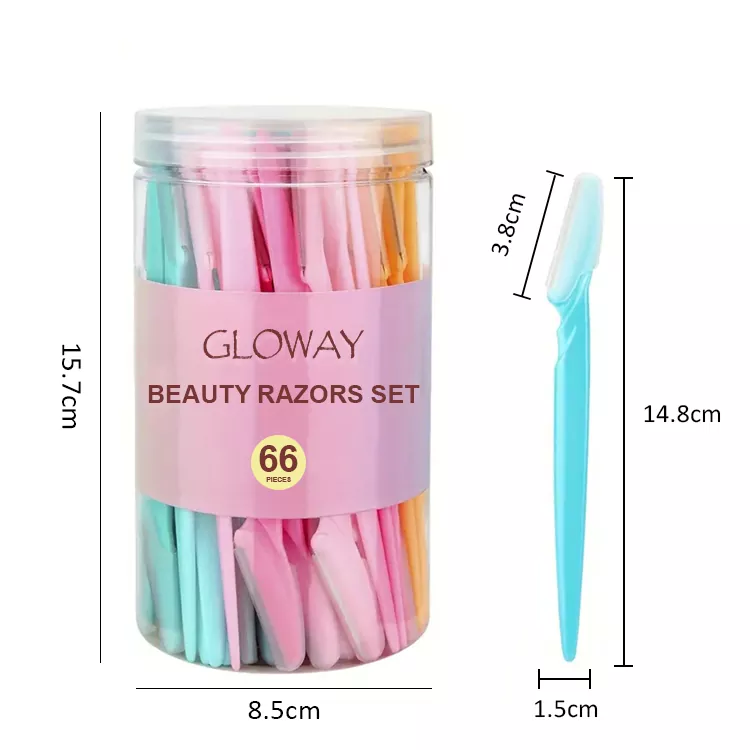 이 빛나는 눈썹 면도기는 스테인레스 스틸 블레이드로 복숭아 퍼즈, 죽은 피부 및 눈썹 모양을 안전하게 제거합니다. 손쉬운 저장 및 휴대 성을 위해 투명한 플라스틱 용기에 포장. 여행 친화적 인 사용.